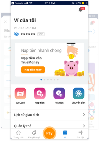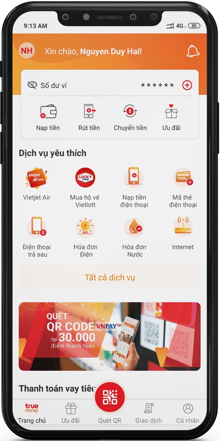Sử dụng dịch vụ của TrueMoney đồng nghĩa rằng bạn chấp nhận