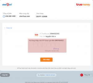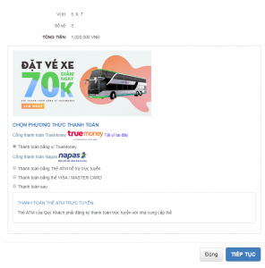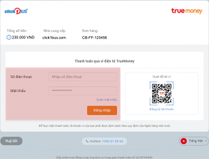 Bước 2: Trong phần “Hình thức thanh toán”, chọn “Thanh toán TrueMoney Ví”