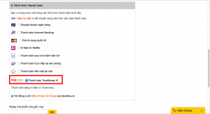 Bước 2: Trong phần “Hình thức thanh toán”, chọn “Thanh toán TrueMoney Ví”