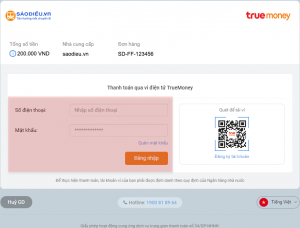Nhấn “Thanh toán”. Bạn sẽ được chuyển đến màn hình đăng nhập ví TrueMoney.