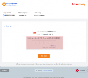 Bước 6: Kiểm tra lại thông tin và hoàn tất thanh toán. Số tiền hoàn sẽ được chuyển vào tài khoản ví TrueMoney của bạn.