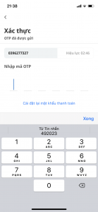 Bước 5: Xác thực bằng mã OTP hoặc mật khẩu thanh toán để thực hiện thanh toán