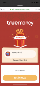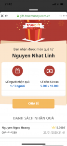 Bước 4: Bạn đã nhận lì xì TrueGift thành công