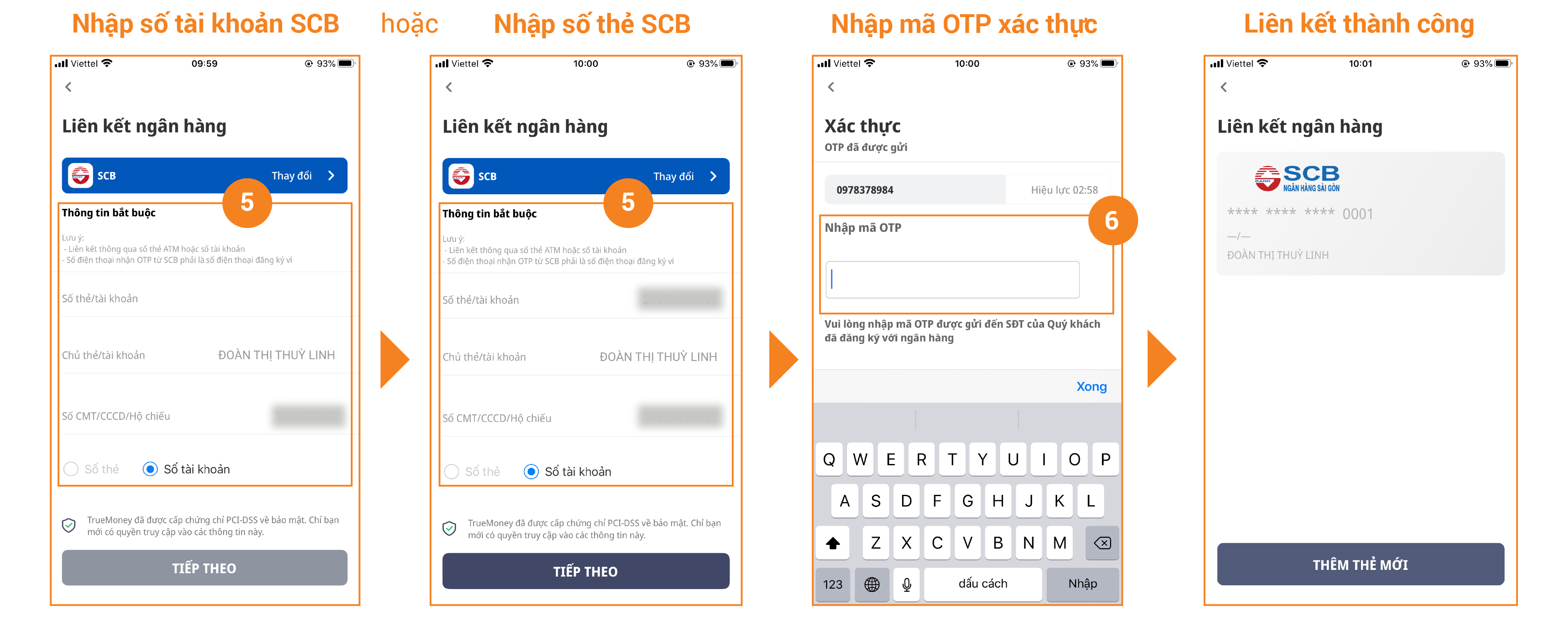 Các thao tác đơn giản liên kết ngân hàng SCB trên ví TrueMoney Vietnam