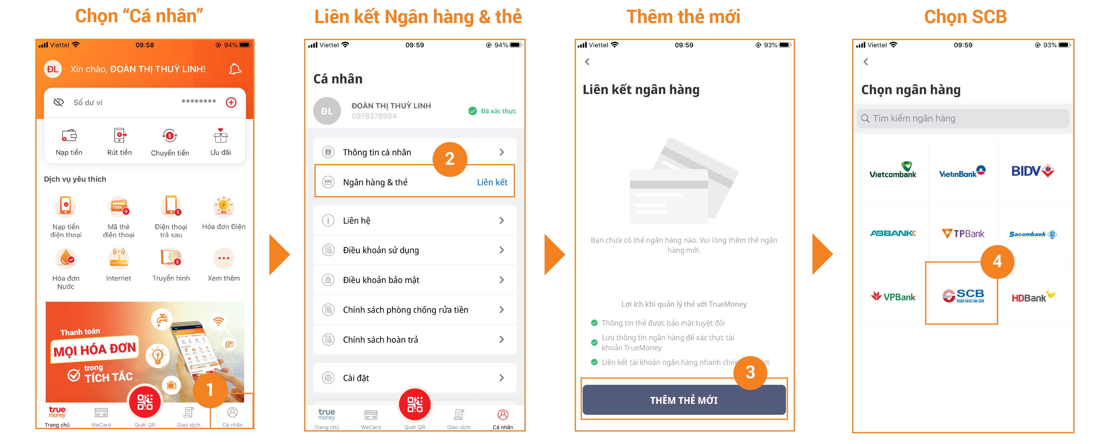 Các thao tác đơn giản liên kết ngân hàng SCB trên ví TrueMoney Vietnam