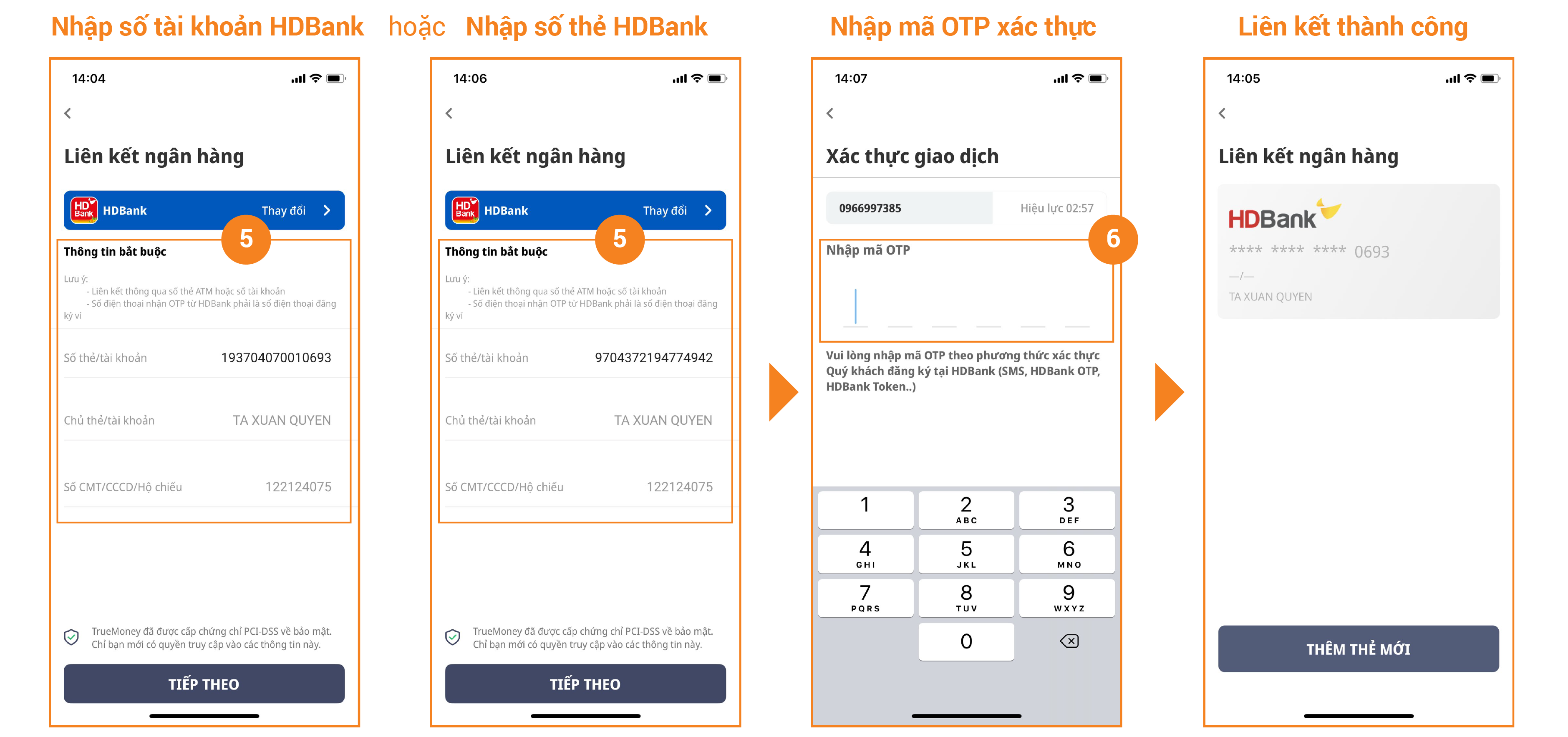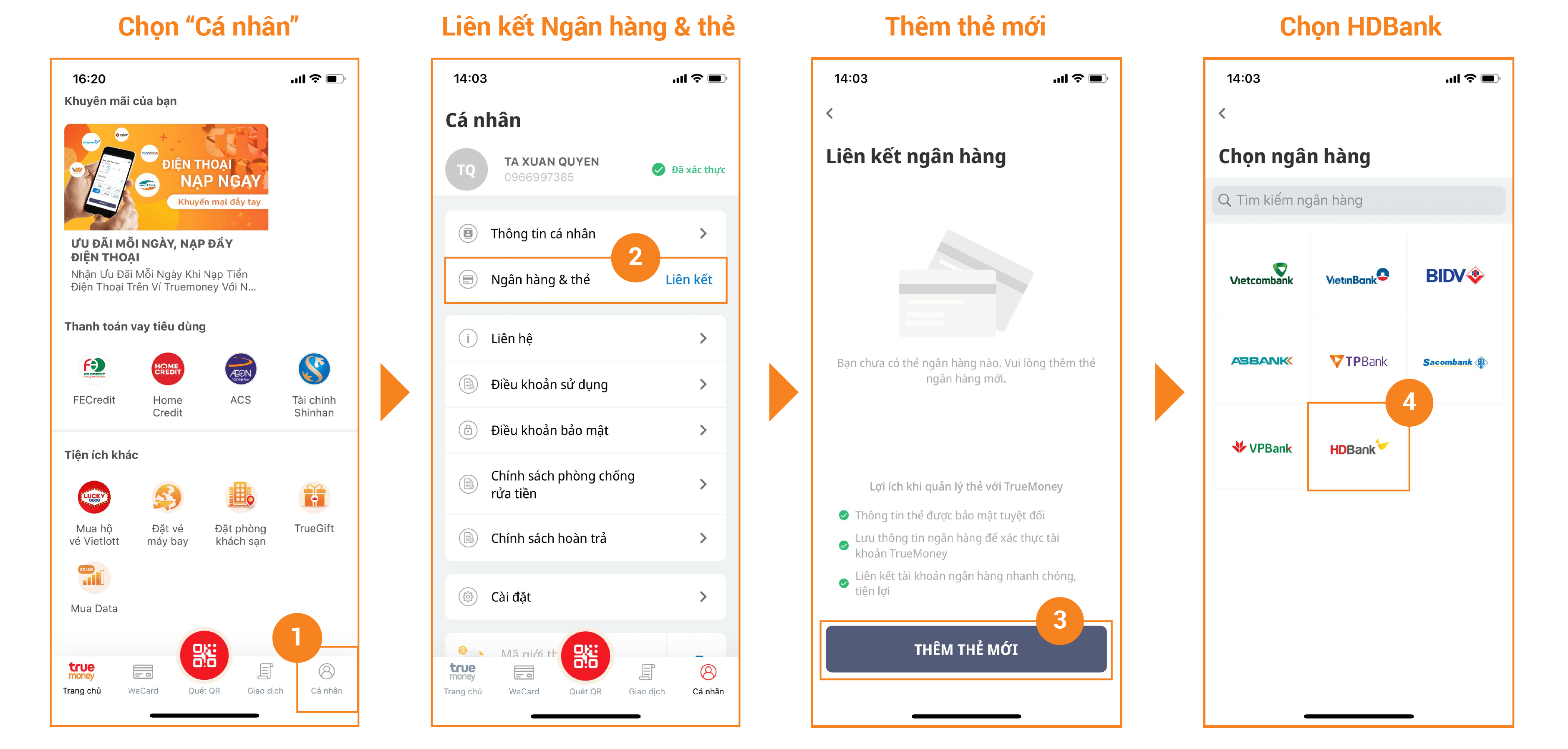 Các thao tác đơn giản liên kết tài khoản HDBank trên ví TrueMoney Vietnam
